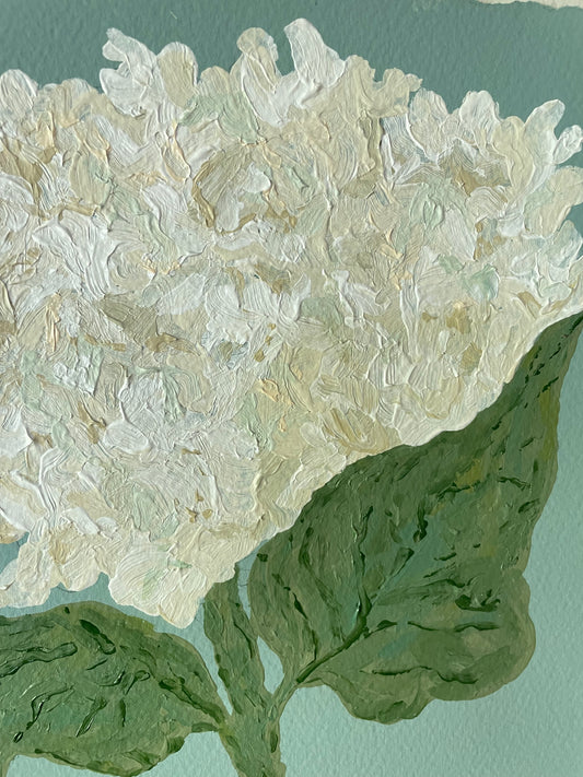 8x10 Green & Blue Hydrangea on Sage paper no. 1