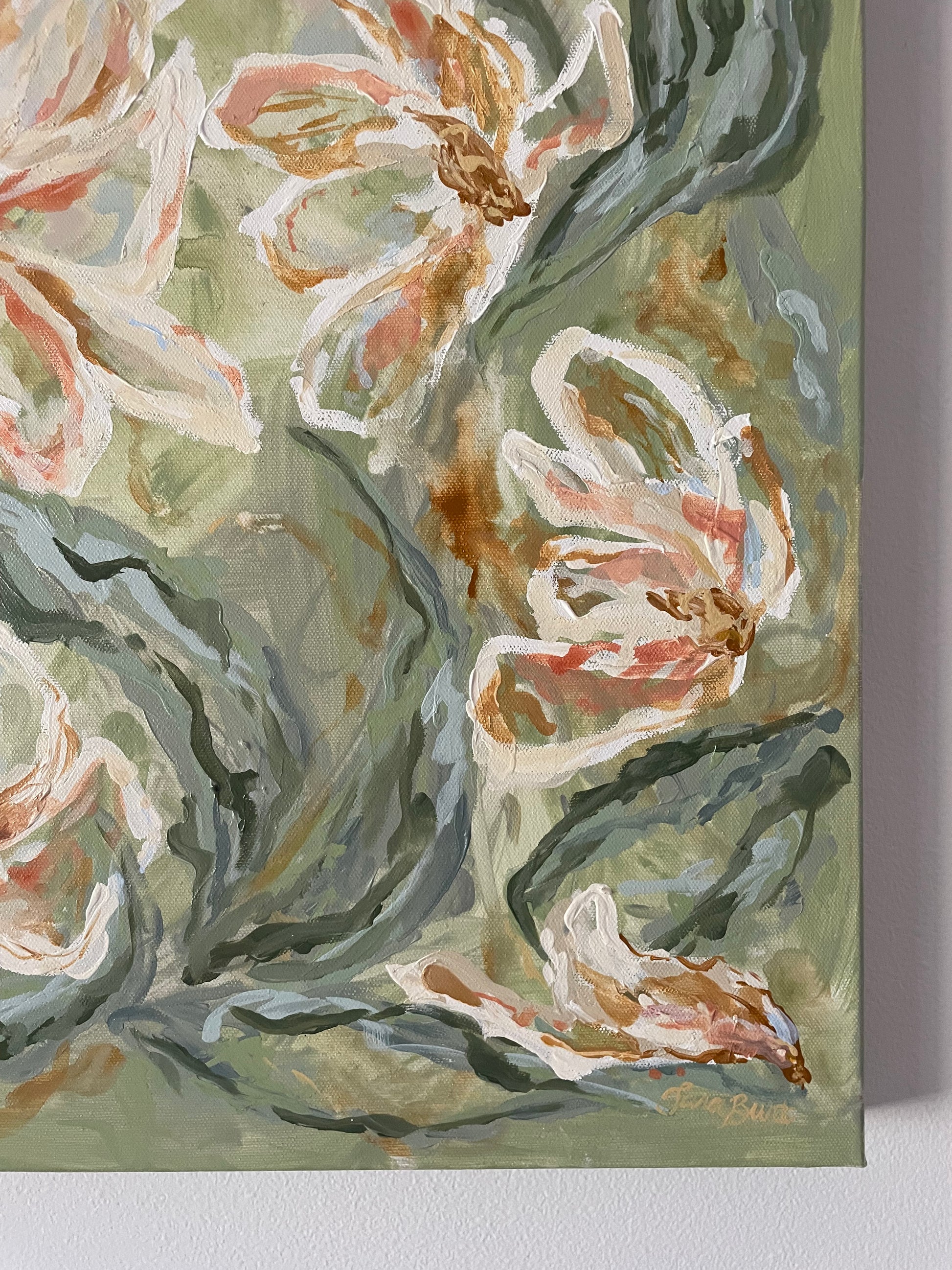 Soft washes and intuitive marks come together to create this abstract magnolia piece